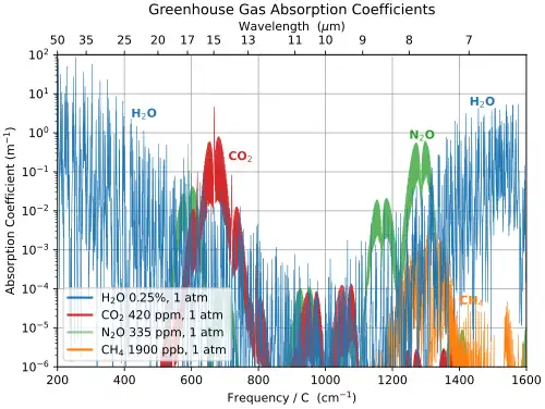 - 1 2 Archer, David (2011). Global Warming: Understanding the Forecast, Chapter 4: Greenhouse Gases (PDF) (2 ed.). Wiley. ISBN 978-0470943410. Retrieved 14 June 2023.