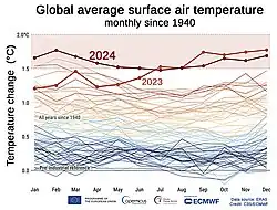 - ↑ "The 2024 Annual Climate Summary / Global Climate Highlights 2024" (PDF). Copernicus Programme. 15 January 2025. Archived (PDF) from the original on 15 January 2025.