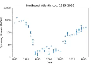 The 2019 Global Assessment Report on Biodiversity and Ecosystem Services, published by the United Nations IPBES, estimated that about one million species are currently at risk of extinction within decades due to human activities.[79][80][81] Organized human existence is jeopardised by increasingly rapid destruction of the systems that support life on Earth, according to the report, the result of one of the most comprehensive studies of the health of the planet ever conducted.[82] Moreover, the 2021 Economics of Biodiversity review, published by the UK government, asserts that "biodiversity is declining faster than at any time in human history."[83][84] According to a 2022 study published in Frontiers in Ecology and the Environment, a survey of more than 3,000 experts says that the extent of the mass extinction might be greater than previously thought, and estimates that roughly 30% of species "have been globally threatened or driven extinct since the year 1500."[85][86] In a 2022 report, IPBES listed unsustainable fishing, hunting, and logging as some of the primary drivers of the global extinction crisis.[87]