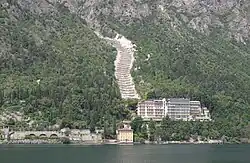 Landslides are frequently made worse by human development (such as urban sprawl) and resource exploitation (such as mining and deforestation). Land degradation frequently leads to less stabilization of soil by vegetation.[8] Additionally, global warming caused by climate change and other human impact on the environment, can increase the frequency of natural events (such as extreme weather) which trigger landslides.[9] Landslide mitigation describes the policy and practices for reducing the risk of human impacts of landslides, reducing the risk of natural disaster.