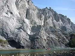 Rhine cutting through Flims Rockslide debris, Switzerland