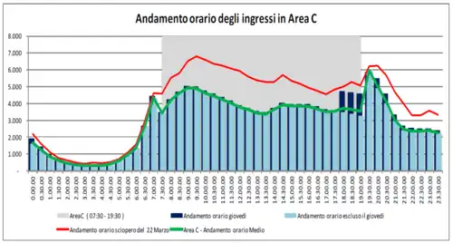 - ↑ Carra, Ilaria (17 January 2015). "Milano, finito l'effetto Area C nel 2014 gli accessi in centro sono ritornati a crescere". la Repubblica (in Italian). Retrieved 5 October 2015.