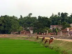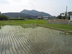 A paddy field (or paddy) is a flooded field of arable land used for growing semiaquatic crops, most notably rice and taro. It originates from the Neolithic rice-farming cultures of the Yangtze River basin in southern China, associated with pre-Austronesian and Hmong-Mien cultures. It was spread in prehistoric times by the expansion of Austronesian peoples to Island Southeast Asia, Madagascar, Melanesia, Micronesia, and Polynesia. The technology was also acquired by other cultures in mainland Asia for rice farming, spreading to East Asia, Mainland Southeast Asia, and South Asia.