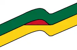 A hydrocarbon trap consists of a reservoir rock (yellow) where oil (red) can accumulate, and a caprock (green) that prevents it from egressing.
