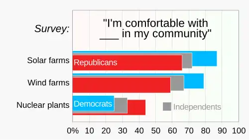 - ↑ Chiu, Allyson; Guskin, Emily; Clement, Scott (3 October 2023). "Americans don't hate living near solar and wind farms as much as you might think". The Washington Post. Archived from the original on 3 October 2023.