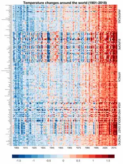 - ↑ Hawkins, Ed (2019-07-21). "#ShowYourStripes / Temperature changes around the world (1901–2018)". Climate Lab Book. Archived from the original on 2019-08-02. (Direct link to image).
