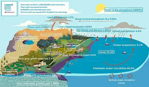 - 1 2 "Estimated Flows of Water in the Global Water Cycle". www3.geosc.psu.edu. Archived from the original on 2017-11-07. Retrieved 2018-01-15.