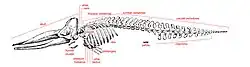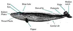 Whale morphology shows several examples of convergent evolution, the most obvious being the streamlined fish-like body shape.[28] Other examples include the use of echolocation for hunting in low light conditions — which is the same hearing adaptation used by bats — and, in the rorqual whales, jaw adaptations, similar to those found in pelicans, that enable engulfment feeding.[29]