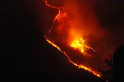 Natural occurrences that can ignite wildfires without the involvement of humans include lightning, volcanic eruptions, sparks from rock falls, and spontaneous combustions.[22][23]