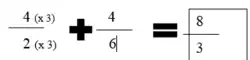But... did you notice something? ? That doesn't seem right, does it? The denominator is smaller than the numerator. When you have a fraction like this, you have to convert it to a mixed fraction (skip to section 2.1.1.4).