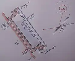 Extra's to add: - painting the chamber black, and adding increased ventilation trough natural ventilation techniques (trought the increased warming up of the chamber). Perhaps this may be done trough the pipe (if made of metal, the metal instead can be painted black and guide the heat down to the chamber). Also, the urine collection might be inmediattly outfitted with a small hose and (non-electrical) handpump to inmediately pump the urine to the food-production plot (so that these nutrients can be inmediattely transferred and do not need to wait out the emptying; pumping may be done after each toilet visit). Finally, perhaps the heat from the faeces composting and from the solar energy may be used to further heat up the hot water system (which will already be powered by tube collectors, but which still need additional heating for certain applications (offcourse an electric boiler will need to be installed too to attain the appropriate temperature). The latter can be done by heat exchanger (to avoid contact with the faeces).