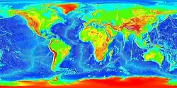 A continental shelf is a portion of a continent that is submerged under an area of relatively shallow water known as a shelf sea. Much of the shelves were exposed during glacial periods and interglacial periods.[1]