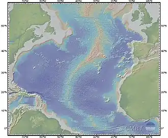 Georges Bank is the most westward of the great Atlantic fishing banks. The now-submerged portions of the North American mainland now comprise the continental shelf running from the Grand Banks of Newfoundland to Georges. Georges Bank was part of the North American mainland as recently as 12,000 years ago.[15]