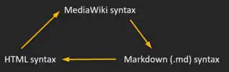 There could be features to enable individuals to easily convert between markdown syntax, HTML and MediaWiki syntax.