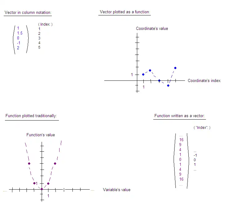 If we have, for example, a 5-dimensional vector, v = [vi], such that i ranges from 1 to 5, we can write without trouble a function w(j) such that j is a discrete variable which can be 1, 2, 3, 4 or 5, and such that w(j) = vj.