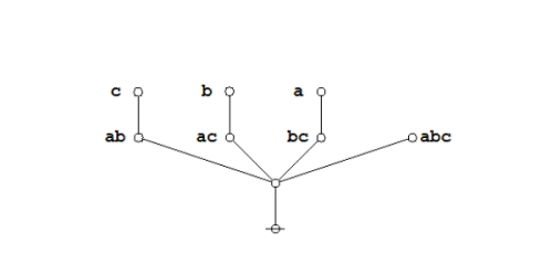 Our observer might think to summarize the results of many such observations by introducing a label or variable to signify any shape of branch whatever, writing something like the following: