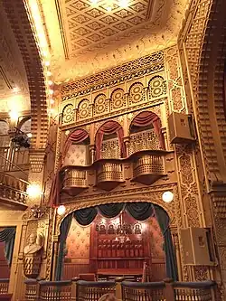 Moorish style was represented well in the auditorium on the ceiling and walls with all the curved lined