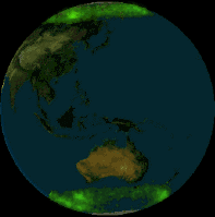 On the lower right is a time-lapse animation of Aurorae over both Earth poles that shows symmetries and simultaneous changes.