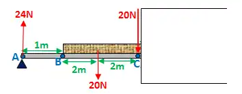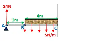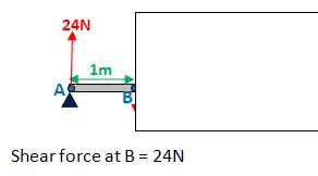 Bending moment at B: 24·1 = 24Nm