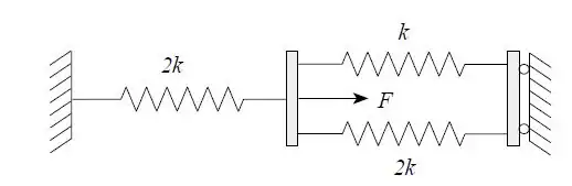 - In matrix form: First we create a matrix to show the systems Degree of Freedoms. The first column represents each spring(#1,#2,#3). The second and third column represent the connectivity of each node. The following is a matrix of the Force vector Next we need each element stiffness matrix for every spring: Element stiffness matrix for Spring #1: Element stiffness matrix for Spring #2: Element stiffness matrix for Spring #3: To get the global stiffness matrix, we add up each element stiffness matrix: Plugging each matrix into Hooke's Law we obtain: Because node one and three are attached to the wall, their displacements are zero: