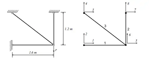 Using the physical displacements for this problem, the solveq function is used to solve the system of equations for the displacement vector a and the support force vector r.