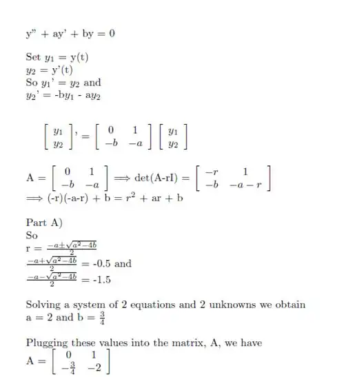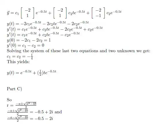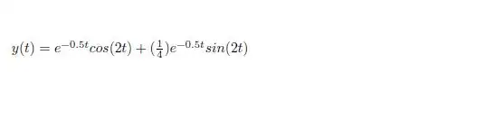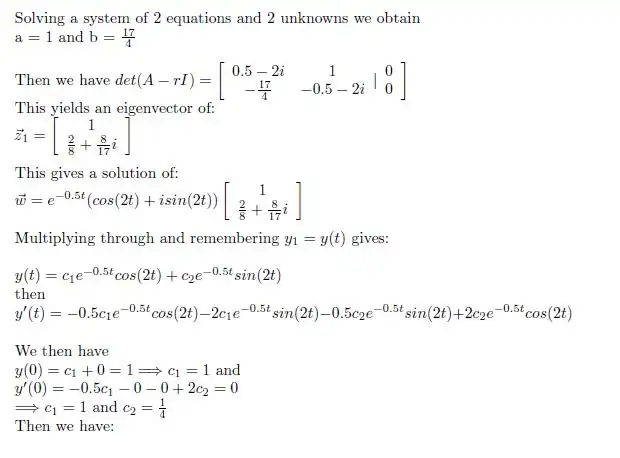 | Solution plotted for roots equal to r = -0.5 + 2i and r = -0.5 - 2i |