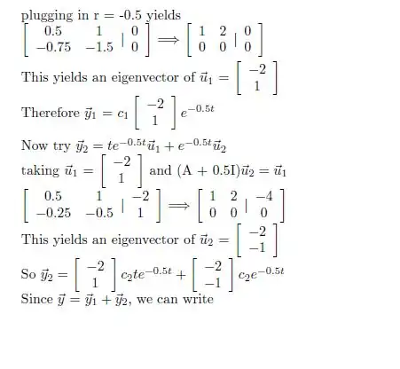 | Solution plotted for roots equal to r = -0.5 and r = -1.5 |