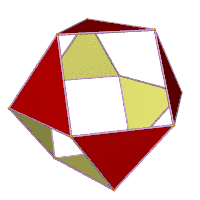 - ↑ Forcing any pair of parallel long edges slightly apart expands the polyhedron, forcing all 3 pairs apart similarly until they become chords of the regular icosahedron, at which point the √6 ≈ 2.449 short edges have stretched only ~1% to a length of 4/ϕ ≈ 2.472. If the short edges are elastic enough that they can be stretched ~15% to 2√2 ≈ 2.828 the long edges will become the square face diagonals of the cuboctahedron (at the limit of expansion).